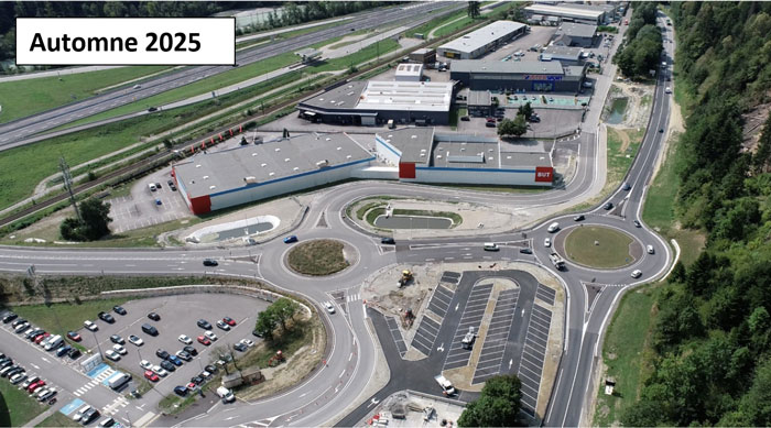 Au terme de 18 mois de travaux, les équipes d’Autoroutes et Tunnel du Mont Blanc (ATMB), du Conseil départemental de la Haute-Savoie et de la commune de Cluses ont inauguré officiellement le 17 septembre 2025 le carrefour métamorphosé entre la RD1205, le quartier clusien de la Maladière avec sa zone industrielle et commerciale, et le diffuseur n°19 de l’Autoroute Blanche.
