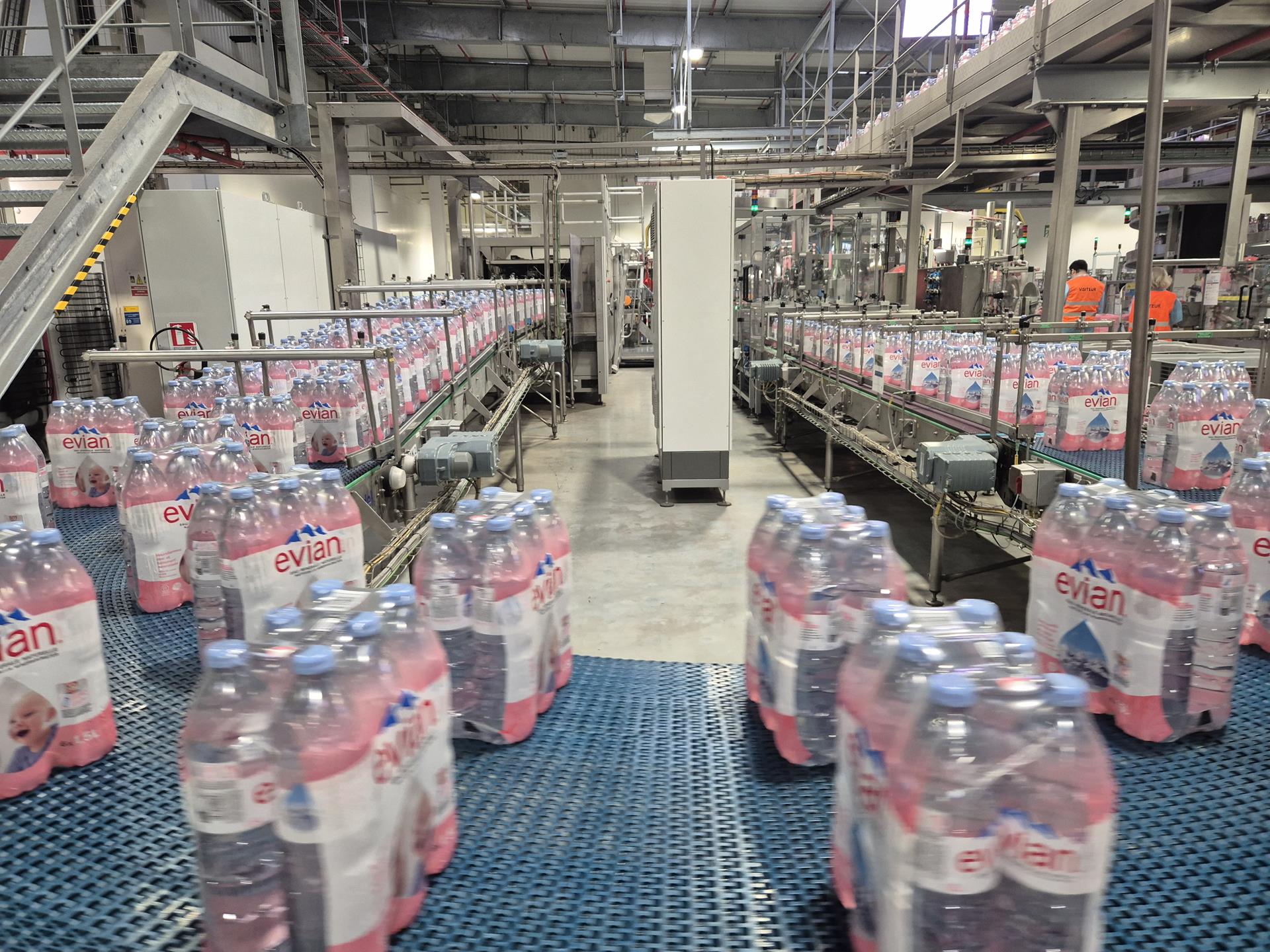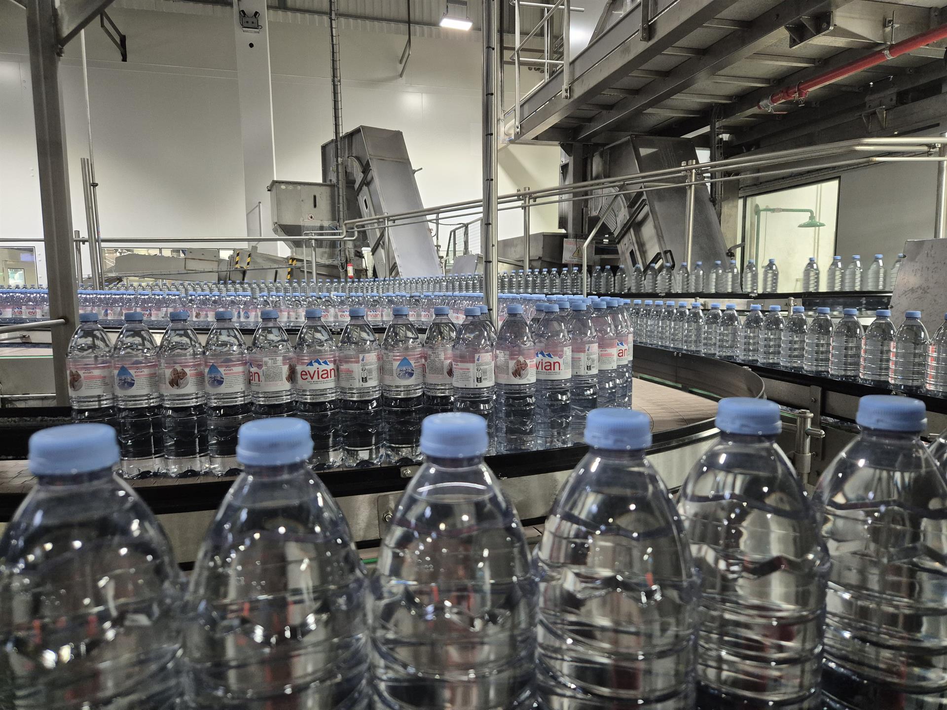 ITC Cathy Le Hec 1- Eau minérale naturelle Evian bicentenaire (29’s)Une fois arrivée à la source, l’eau minérale naturelle est partagée en deux circuits. Une partie est acheminée directement vers Evian-les-Bains pour être consommée par exemple à la buvette Cachat. L’autre partie arrive à l’usine pour y être embouteillée dans des contenants fabriqués sur place, grâce à des préformes soufflées et remplies dans la foulée.